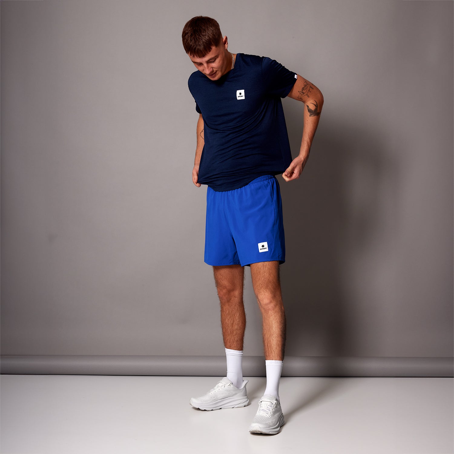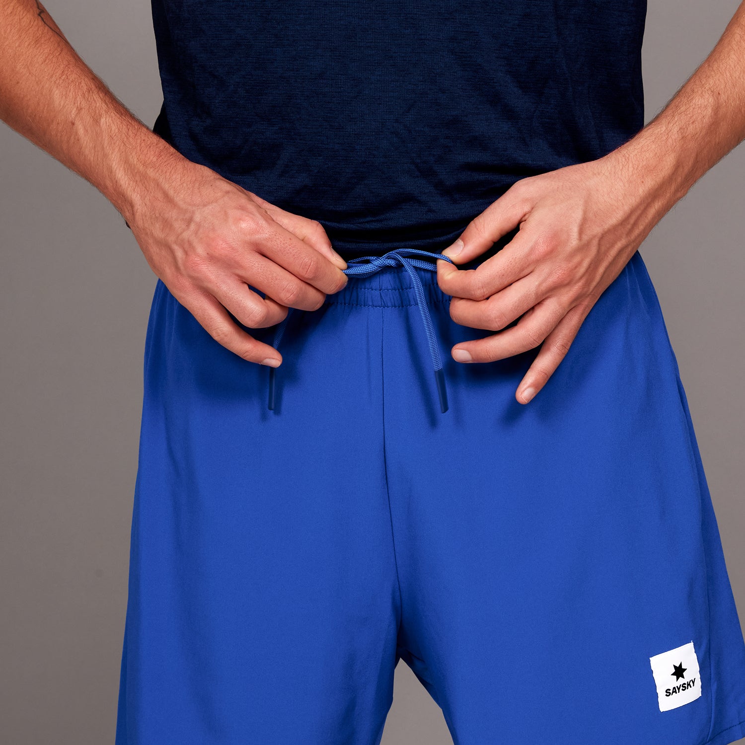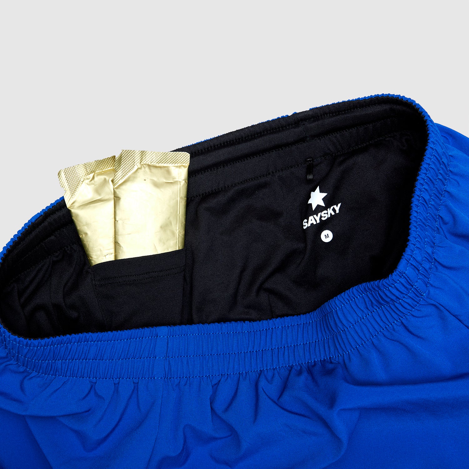 SAYSKYのペースショーツはクラシックなタイプの5インチ(12cm)(12cm)・ランニングショーツです。超軽量で通気性に長けたファブリックを使用し、レギュラーフィットのハイパフォーマンス仕様です。ブルーカラーのショーツで、フロント裾にはホワイトカラーのSAYSKYロゴパッチ付き、バックサイドにはホワイトカラーのクラシックなSAYSKYロゴをデザインしています。