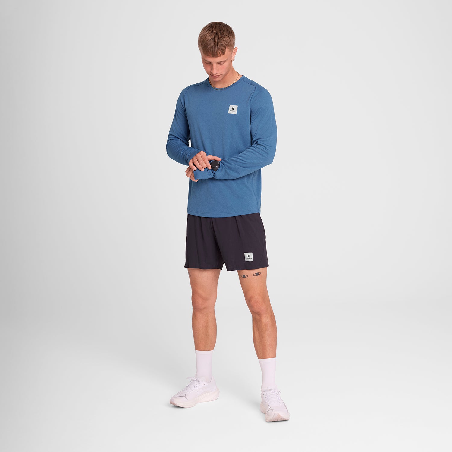 - SAYSKYDRYパフォーマンス素材: 柔らかく快適な着心地と、ランニング中の汗を素早く吸収・発散する機能性で、ドライで快適な状態をキープ