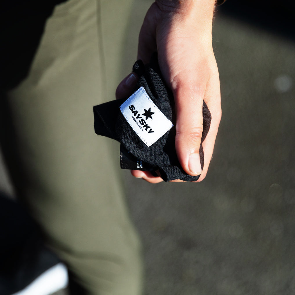 SAYSKYのメリノBase165ハットは100%メリノウールを使用したランニング用アクセサリです。カラーはブラックでフロントにはホワイトのSAYSKYロゴラベルを付けています。暖かくて着心地がよくランニングにも気軽に持ち運びできるコンパクトさで、冬のワードローブの定番アイテムです。