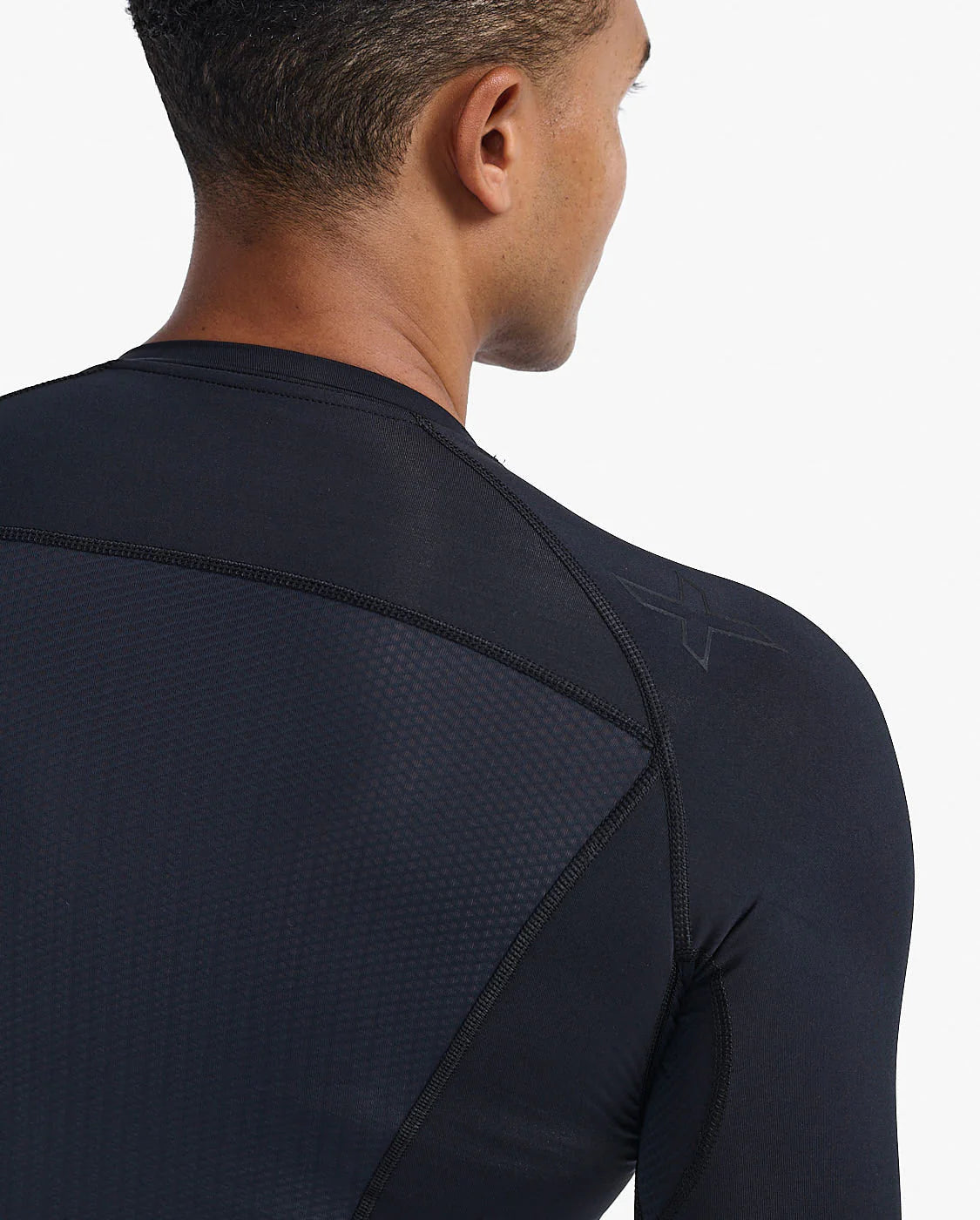 コンプレッションロングスリーブは、上半身の筋肉を完全に着圧でサポートし、上体の姿勢強化ならびに体幹安定に最適です。