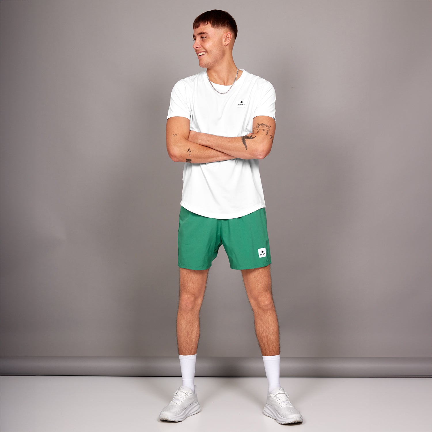 - SAYSKYDRYパフォーマンスファブリックを使用: ソフトで軽量かつ吸汗速乾性に長けた素材。ランニング中も身体をドライに保ち、快適な着心地