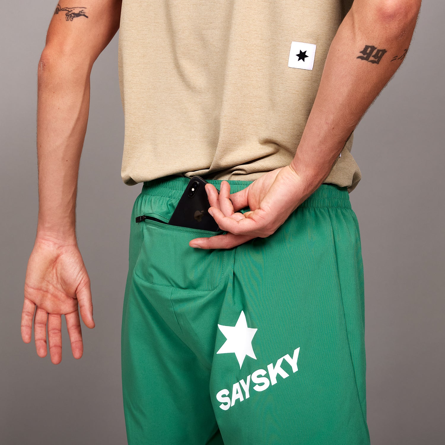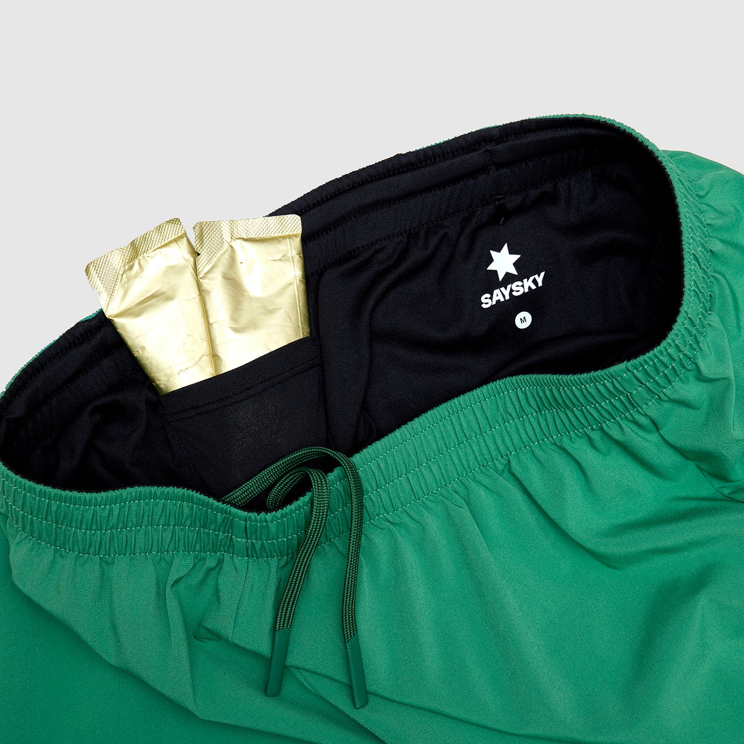 SAYSKYのペースショーツはクラシックなタイプの5インチ(12cm)・ランニングショーツです。超軽量で通気性に長けたファブリックを使用し、レギュラーフィットのハイパフォーマンス仕様です。グリーンカラーのショーツで、フロント裾にはホワイトカラーのSAYSKYロゴパッチ付き、バックサイドにはホワイトカラーのクラシックなSAYSKYロゴをデザインしています。