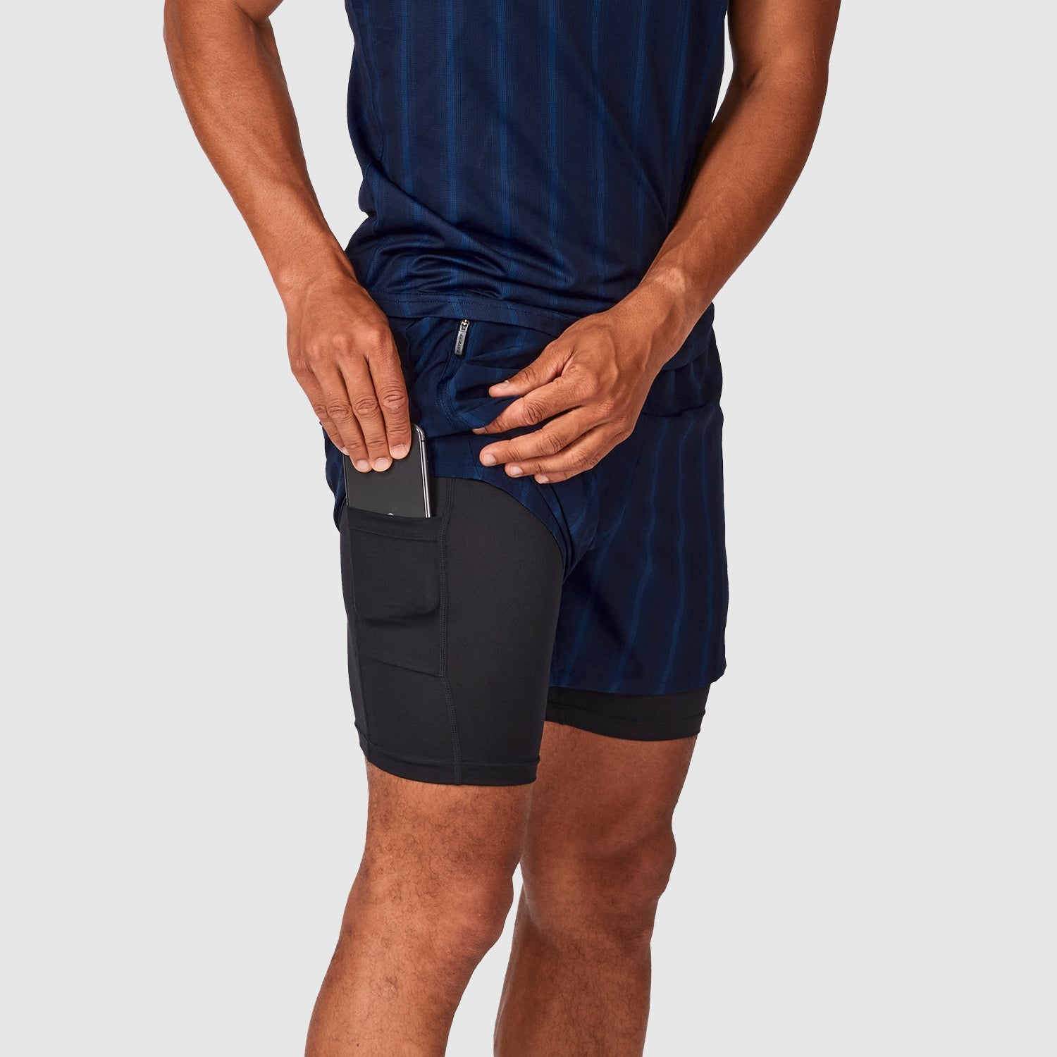 ランニングショーツ ZMRSH02 2-in-1 Shorts Nn07 X SAYSKY - Black/Navy Stripe [ユニセックス]